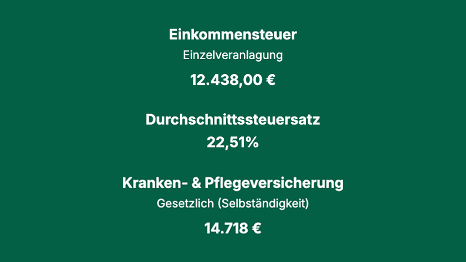 Steuersafe ist ein Steuerrechner für Selbständige. Stell' dir einfach einen Brutto-Netto-Rechner für Angestellte vor, der aber auf Selbständige ausgerichtet ist. Probier' es doch gleich mal aus und plane dein Jahr 2026.